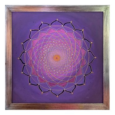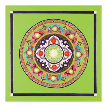 By using the concept and structure that is found in sacred geometry the Healing Art series incorporates designs that allow me an unlimited opportunity to encompass the depth of meaning with surprising visual beauty. An understanding of the circle as a universal symbol for wholeness, timelessness, the Self, just to name a few, informs this series. Circle translates to mandala in Sanskrit. Though it may contain squares or triangles it is always concentric. I see the mandala as an energetic metaphor and vehicle for cosmic insight integrating balanced visual elements to convey harmony and unity. The healing effects serve as tools on one’s spiritual journey.